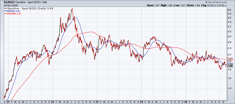 US gasoline prices are near the lowest level in four years. The national average for a gallon of gas on Monday tallied at $3.07, which amounts to a slight uptick from a year ago, AAA data showed.